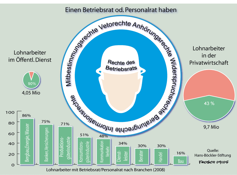 Gewerkschaften & Betriebsräte in Ostdeutschland: „Wird offenkundig, dass der enge Zusammenhang des Doppelsystems der Arbeitnehmervertretung im Westen Deutschlands - Gewerkschaften und Betriebsräte - sich im Osten nicht wiederholt hat.“ LitDok. 1998/99 a-617. „Und das ‚deutsche Modell der Arbeitsbeziehungen‘ wird in Ostdeutschland in seinen Regulierungsmöglichkeiten unterminiert.“ LitDok. 1998/99 a-618. Gewerkschaften & Lohnspreizung : „die starke Stellung der Gewerkschaften in den meisten europäischen Ländern verhindern eine stärkere Spreizung der Lohnstruktur.“ LitDok. 1998/99 a-453. gewerkschaftlicher Widerstand & Arbeitszeit: „Die Maschinenlaufzeiten sind erheblich kürzer als in anderen EU-Staaten. Schicht- Wochenend- und Nachtarbeit stoßen hierzulande auf wesentlich größere Widerstände als in den europäischen Konkurrenzländern. Für eine Verlängerung der Arbeitszeiten gibt es in Deutschland deutlich weniger Bereitschaft als im europäischen Umland.“ LitDok. 1998/99 a-876. aus: Literaturdokumentation zur Arbeitsmarkt und Berufsforschung, Hrsg. von der Bundesanstalt für Arbeit, div. Jhrg. |