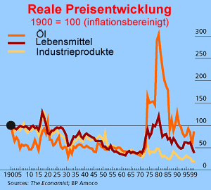 Gehen wir in der historischen Betrachtung noch weiter zurück, dann sind die realen, inflationsbereinigten Preise seit 1900 sogar gesunken.