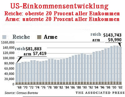 In Homers Odyssee prahlte der Schweinehirt von Odysseus über den Reichtum seines Herrn: „Nicht zwanzig Männer zusammen haben so viele Reichtümer.“ (Odyssee, 14, 96f.) Das Zwanzigfache eines Durchschnitthaushaltes war also im Griechenland Homers ein märchenhafter Reichtum. Rund 300 Jahre später, im 5. Jahrhundert v. Chr., erfahren wir von dem Landgut eines gewissen Buselos in Eleusis im Wert von 12.000 Drachmen, ohne dass dieser Reichtum Anlass zum Erstaunen gab. Der Besitz des Buselos war vierzigmal höher als die athenische Armutsgrenze, bis zu der ein Athener Anspruch auf staatliche Unterstützung hatte. (vgl. Finley, Antike Wirtschaft, 113.) In den USA gab es im Jahr 1892 gut 4.000 Dollar-Millionäre. Vermögen im Wert von 1 Million Dollar galt damals als „Reichtumsschwelle“. Rund hundert Jahre später, um 1982, musste man, um in die Forbes-Liste der 400 reichsten Familien der USA aufgenommen zu werden, schon ein „Nettovermögen von 90 Millionen Dollar“ besitzen. Im Jahr 2000 wurden erst Familien mit einem Vermögen von mehr als 725 Millionen Dollar in die Forbes-Liste aufgenommen. (nach: Economist, 16.6. 2001) „1997 gab es in der Welt 7,2 Millionen Dollar-Millionäre. Diese verfügten über rund ein Drittel des Weltreichtums.“ (Economist, 16.6. 2001) Heute leben in den USA leben 170 Milliardäre, jeder mit einem Vermögen, das 10-millionenmal so hoch ist wie ein überdurchschnittliches Jahresgehalt von 100.000 Dollar. (Nach: ‚The Economist‘ 28. 11.98 und 30.05.98.)